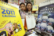 12일 이마트 용산점에서 모델들이 무한도전 탁상용 및 벽걸이용 달력, 개그콘서트 달력, 디자인 다이어리 등 다양한 종류의 새해맞이 용품들을 소개하고 있다./연합뉴스