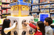 11일 성남 분당구 현대백화점 판교점 5층에 마련된 국내 첫번째 ‘레고스토어’ 미니피겨존에서 어린이들이 브릭을 골라보고 있다./연합뉴스