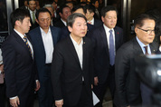 국민의당 안철수 전 대표와 박지원 원내대표가 박근혜 대통령 탄핵소추안이 가결된 9일 오후 국회 본회의장을 나서고 있다./연합뉴스