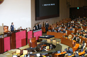 정세균 국회의장이 9일 오후 국회에서 열린 본회의에서 박근혜 대통령 탄핵소추안안 가결을 선포하고 있다./연합뉴스