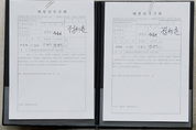 박근혜 대통령에 대한 탄핵소추안이 9일 오후 국회 본회의장에서 찬성 234명, 반대 56명, 기권 2명, 무효 7명으로 가결됐다. 사진은 정세균 국회의장이 서명한 대통령(박근혜) 탄핵소추의결서 정본(왼쪽)과 등본. /연합뉴스