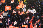 박근혜 대통령에 대한 탄핵소추안이 가결된 9일 오후 서울 영등포구 국회 모인 시민들이 환호하고 있다. 이날 박 대통령에 대한 탄핵소추안은 찬성 234표, 반대 56표, 기권2표, 무효 7표로 가결됐다 /연합뉴스
