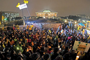 박근혜 대통령의 탄핵소추안 표결을 하루 앞둔 8일 오후 서울 여의도 국회의사당 앞에서 탄핵을 촉구하는 촛불집회가 열리고 있다./연합뉴스