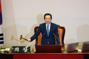 정세균 국회의장이 9일 오후 국회에서 열린 본회의에서 박근혜 대통령 탄핵소추안을 상정하고 있다./연합뉴스