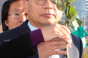 새누리당 이정현 대표가 9일 오후 국회 본회의장에서 열린 박근혜 대통령의 탄핵소추안에 대한 표결을 위해 입장하다 환경운동연합 등 시민단체 회원들이 전달하는 '탄핵찬성 촉구' 꽃다발을 외면하고 있다. 꽃다발에는 "촛불을 기억하세요". "탄핵에 찬성하세요"란 글귀가 쓰여 있다. /연합뉴스