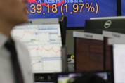 코스피가 크게 올라 2,000선을 가볍게 돌파 39.18포인트 상승한 2,031.07로 장을 마감한 8일 오후 서울 중구 을지로 KEB하나은행 본점 딜링룸에서 딜러들이 업무를 보고 있다./연합뉴스