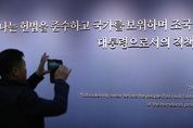 23일 오전 세종시 다솜로대통령기록관을 찾은 관람객이 헌법을 준수하고 대통령으로서의 직책을 성실히 수행하겠다는 내용의 대통령 취임 선서문을 휴대전화로 촬영하고 있다./연합뉴스