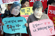 인천지역 시민단체들이 9일 오전 인천시 남동구 로데오거리에서 ‘박근혜 대통령 퇴진 인천비상시국회의 발족 기자회견’을 열고 대통령 퇴진을 촉구하는 퍼포먼스를 하고 있다. /연합뉴스