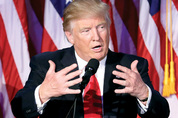 ‘아웃사이더’ 도널드 트럼프가 마침내 미국의 제45대 대통령에 당선됐다. 트럼프는 8일(현지시간) 597일의 대장정 끝에 이날 미 전역에서 열린 대선 투표에서 민주당 대선후보 힐러리 클린턴을 꺾고 대통령에 오르는 파란을 연출했다. ▶▶관련기사 3·4면 트럼프는 다음 날 오전 3시쯤 대선 승리에 필요한 선거인단 과반인 270명을 넘긴 288명을 확보해 역사적인 대권을 거머쥐었다. 그의 러닝메이트인 마이크 펜스 인디애나 주지사도 부통령에 함께 당선됐다. 개표 결과 트럼프는 3대 경합주인 플로리다와 오하이오, 펜실베이니아를 석권하는 등 경합주에서 큰 승리를 거두고 텍사스와 애리조나 등 전통적인 우세주를 대부분 지키는 기염을 토하며 비교적 쉽게 승부를 결정지었다. 3조원의 자산가인 억만장자 부동산재벌로 공직·군 경력이 없는 아웃사이더가 미 대통령이 된 것은 사실상 240년 미국사 최초의 일이다. 그는 내년 1월 20일 취임 시 만 70세로 미 최고령 대통령이 되는 기록도 세운다. 아웃사이더 대통령 시대가 열리면서 미국은 바야흐로 아직 가본 적이 없는 새로운 길로 접어들었다. 특히 지난해 6월 ‘미국 제일주의&