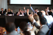 26일 오전 인천 연수구 오크우드프리미어인천에서 열린 ‘제3차 세계영사포럼(GCF·Global Consular Forum)‘에서 줄리아 롱바텀 영국 외교부 영사국장이 각국의 긴급상황 대응 방법에 대해 거수 조사를 하고 있다. /연합뉴스