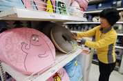 대학 수학능력시험을 앞두고 방석이나 텀블러, 숙면밴드 등 수험생 체력관리에 실용적인 제품들이 인기를 얻고 있다. 사진은 27일 서울 이마트 용산점의 방석 판매대. /연합뉴스