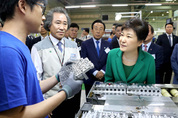 박근혜 대통령이 19일 구미산업단지 (주)무룡을 방문, 제품생산에 관해 설명을 듣고 있다./연합뉴스