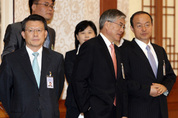 송민순 전 외교통상부 장관은 회고록에서 2007년 11월 20일 백종천 당시 청와대 안보실장으로부터 ‘북남관계 발전에 위태로운 사태를 초래할 테니 인권결의 표결에 책임 있는 입장을 취하길 바란다. 남측의 태도를 주시할 것’이라는 북한의 입장을 노무현 대통령이 있는 자리에서 쪽지로 전달받았다고 했다. 그러나 백종천 실장은 “청와대 참모진으로부터 받은 팩스 문서를 건네준 것으로 국가정보원의 대북 동향 보고였다”라는 입장을 언론을 통해 밝혔다. 사진은 2007년 4월 청와대에서 대화하는 송 전 장관(오른쪽부터)과 문재인 비서실장, 백 안보실장./연합뉴스