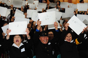6일 용인시 수지구 풍덕천동 정평초등학교에서 열린 ‘추억의 1일 초등학교’행사에서 용인 성인문해학교에 다니는 어르신들이 도전 골든벨 게임을 하며 즐거운 시간을 보내고 있다./노경신기자 mono316@