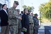 서맨사 파워 유엔주재 미국 대사(왼쪽 세 번째)가 9일 오후 파주시 비무장지대 내 판문점을 방문해 군 관계자에게 설명을 듣고 있다. 파워 대사는 취임 후 처음으로 한국을 찾았다./연합뉴스