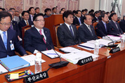 조희연 서울시교육감(왼쪽에서 다섯번째)을 비롯한 각 시도 교육감들이 6일 오전 국회에서 열린 국회 교문위의 서울시교육청 등 각 시도 교육청에 대한 국정감사에 출석하고 있다. 왼쪽부터 김석준 부산교육감, 우동기 대구교육감, 이청연 인천교육감, 장휘국 광주교육감, 조희연 서울교육감, 설동호 대전교육감, 김복만 울산교육감, 최교진 세종교육감./연합뉴스