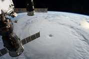 18호 태풍 차바가 5일 동해를 따라 이동하면서 한반도와 일본 양쪽에 피해를 줄 것으로 예상된다. 사진은 일본 우주비행사 오니시 다쿠야(大西卓哉) 씨가 국제우주정거장에서 촬영한 차바의 모습. /연합뉴스