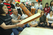 새누리당 이정현 대표가 13일 오전 서울 중구 을지로 탈북 청소년을 위한 대안학교인 여명학교를 방문, 학생들과 윷놀이를 하고 있다./연합뉴스