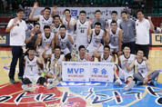 28일 서울 잠실학생체육관에서 열린 2016 KCC 프로-아마 농구 최강전 결승전에서 창원 LG에 27점차로 뒤지다가 역전에 성공, 84-71로 승리를 거두고 우승을 차지한 신협 상무 선수들이 기념촬영을 하고 있다./연합뉴스