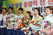 리우올림픽 전 종목 석권의 위업을 달성한 한국 양궁 대표팀 선수단이 16일 귀국했다. 문형철 양궁 총감독을 필두로 남자 개인전 금메달 구본찬(현대제철), 남자 단체전 금메달 김우진(청주시청), 이승윤(코오롱엑스텐보이즈), 여자 개인전 금메달 장혜진(LH), 여자단체전 금메달 최미선(광주여대), 기보배(광주시청)가 금메달을 목에 걸고 인천국제공항을 통해 입국했다. 2관왕을 차지한 장혜진은 “비행기에서는 실감을 못 했는데, 많은 분이 나와 이제 실감 난다”라며 “16강전 남북 대결이 가장 부담됐다. 4강전에서는 바람이 많이 불어 어려웠는데 생각하지 못한 2관왕을 기록해 기쁘다”라고 말했다. 남자 개인전과 단체전에서 금메달을 딴 구본찬은 “무조건 단체전을 따자는 생각을 하고 있어 개인전 준비는 많이 못 했다”라면서 “8강전 때 졌다고 생각했는데 상대 선수가 슛오프 때 8점을 쏘더라. 하늘이 내려준 금메달 같다”라며 소감을 말했다. 그는 리우 현지에서 쾌활한 성격으로 많은 스포트라이트를 받았다. 그는 ‘까불이라는 별명에 대해 어떻게 생각하느냐’라는 말에 &ld