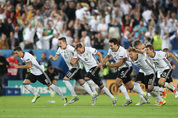 ‘전차군단’ 독일이 승부차기 끝에 ‘아주리 징크스’에서 탈출하고 2016 유럽축구선수권대회(유로 2016) 우승을 향한 발걸음을 재촉했다. 독일은 3일 프랑스 보르도의 스타드 드 보르도에서 치러진 유로 2016 8강전에서 ‘아주리 군단’ 이탈리아와 120분 연장 혈투 끝에 1-1로 승부를 내지 못한 뒤 승부차기에서 6-5로 극적으로 이겨 4강에 진출했다. 스페인과 함께 유로 대회 최다우승(3회)을 기록 중인 독일은 4일 치러지는 프랑스-아이슬란드 8강전 승자와 8일 오전 4시 프랑스 마르세유에서 준결승전을 치른다. 독일은 이날 승리로 그동안 메이저 대회(유로 대회·월드컵)에서 이탈리아에 철저히 유린당했던 ‘아주리 징크스’를 벗어났다. 독일은 역대 메이저 대회에서 이탈리아를 상대로 4무4패(유로 대회 2무1패·월드컵 2무3패)로 아직 한 차례 승리도 따내지 못했다가 무려 9명이 투입된 이날 승부차기에서 짜릿한 첫 승리를 거뒀다. ‘천적’ 이탈리아를 상대로 독일은 토마스 뮐러와 마리오 고메즈를 최전방 투톱으로 내세웠다. 이에 맞서