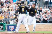 강정호, 담장 넘겨 ‘시즌 8호’ 피츠버그, 에인절스 8-7 꺾어 시애틀 이대호, 멀티히트 작성 김현수, 4경기 연속 안타 행진 오승환, 5경기 연속 위력 투구 곳곳에서 코리언 메이저리거를 향한 팬들의 함성이 들렸다. 강정호(28·피츠버그 파이리츠)가 이틀 연속 홈런포를 쏘아 올렸고 이대호(34·시애틀 매리너스)는 멀티히트(한 경기 2안타 이상)를 작성했다. 김현수(29·볼티모어 오리올스)도 시즌 5번째 2루타를 치며 4경기 연속안타 행진을 이어갔고 오승환(34·세인트루이스 카디널스)은 5경기 연속 무실점 위력투를 선보였다. 가장 돋보인 선수는 강정호였다. 강정호는 5일 미국 펜실베이니아주 피츠버그 PNC 파크에서 열린 미국프로야구 로스앤젤레스 에인절스와 홈경기에 5번타자 3루수로 선발 출전해 홈런 포함 3타수 1안타 2타점을 기록했다. 볼넷과 몸에 맞는 공도 한 개씩 얻어 3차례 출루했다. 전날(4일 에인절스전) 홈런을 터뜨리고도 팀 패배에 아쉬움을 삼켰던 강정호는 첫 타석부터 시원한 홈런을 신고했다. 0-1로 뒤진 2회말 무사 2루에서 타석에 선 강정호는 에인절스 선발 율리스 차신의