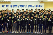 홍명보장학재단은 22일 서울 서초구 서울팔래스호텔에서 ‘제14회 홍명보장학재단 장학금 수여식’을 열어 축구 유망주 34명에게 장학금을 전달했다. 이번에 장학 대상자는 전국 초·중·고등학교 선수들 가운데 각 연맹과 재단의 최종 선발 방식을 걸쳐 34명이 선발됐다. 이들에게는 고등학교 졸업 때까지 150만원의 장학금과 축구용품이 후원된다. 2002년 설립된 홍명보장학재단은 지금까지 총 330명을 선발했다. 김진수(호펜하임), 이종호(전북), 지소연(첼시 레이디스) 등이 대표적인 장학생 출신이다. 홍명보 이사장은 “장학생 출신들이 국내외에서 좋은 활약을 펼치는 것을 보며 많은 책임감을 느낀다”고 말했다. 국가대표 수비수 김영권(광저우)은 이날 홍명보장학재단에 축구발전기금을 기부했다. /연합뉴스
