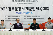 군인올림픽 선수단 7500명 참가 경북일대 8개 市郡 2~11일 개최 일반·군사 등 24개 종목 열전 한국, 금 25~30개 종합 3위 전망 군부대 시설·이동식 숙소 활용 아파트 신축 대체 700억 예산절감 지구촌 최대의 군인 스포츠 축제가 다음 달 2일부터 11일까지 경상북도 문경에서 열린다. 2015 경북 문경 세계군인체육대회 조직위원회는 15일 서울 중구 한국프레스센터에서 기자회견을 하고 이 대회에 120여개국 선수와 임원 등 선수단 7천500여명이 참가한다고 밝혔다. 대회가 열리는 곳은 문경과 김천, 안동, 영주, 영천, 상주, 예천, 포항 등 경북 일대 8개 시·군이다. 김상기 조직위원장은 “역대 가장 많은 국가와 선수가 참가한다”며 “조직위는 경기 시설에 드는 비용을 최소화하면서 알차게 준비해 일류 명품 대회를 만들겠다”고 밝혔다. 김 위원장은 “남북한 대치로 언제 또 긴장 국면이 닥칠지 모르는 한반도에서 세계 군인들이 스포츠로 하나가 되는 대회가 열린다는 것 자체에 의미가 있다“며 “한국이 스포츠를 통해 세계 평화 유지에 기여할 수 있