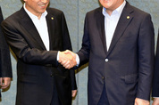 한국 당국의 재정·통화 정책을 이끄는 두 수장이 모처럼 주요 간부들과 함께 만남을 가졌다. 최경환 경제부총리 겸 기획재정부 장관과 이주열 한국은행 총재는 지난 28일 오후 7시 명동 은행회관 뱅커스클럽에서 만찬 회동을 가졌다. 최 부총리와 이 총재가 간부들을 대동하고 만나는 것은 최 부총리 취임 직후인 작년 7월 21일 이후 1년1개월여 만이다. 양측 모두 최 부총리와 이 총재 외에 주요 간부가 10명씩 참석했다. 한국은행 쪽에서는 장병화 부총재, 하 성 감사, 허재성·서영경·김민호 부총재보 등이 참석했고, 기획재정부 쪽에서는 주형환 제1차관, 정은보 차관보, 최희남 국제경제관리관 등이 자리를 함께했다. 최 부총리는 자리에 앉자마자 “밥값은 누가 내나? 재정상황이 나은지 통화사정이 나은지…”라고 농담을 던져 다소 어색했던 분위기를 풀었다. 그는 “총재님 자주 뵐 수 있어야 하는데, 다른 나라는 재무장관과 중앙은행 총재가 만나는 게 전혀 뉴스거리가 안 된다”며 “우리는 뉴스가 되니 앞으로 뉴스거리가 안 되게 좀 만들어 보자”라고 말했다. 주형환 차