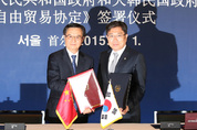 인구 13억의 세계 최대 시장인 중국과의 자유무역협정(FTA)이 1일 정식 서명돼 수교 23년을 맞는 한·중 관계에 새로운 지평이 열렸다. 우리나라의 최대 교역국이자 투자 대상국인 중국과의 FTA는 2005년 민간 공동연구로 시작된 이래 2014년 11월 실질 타결 선언, 2015년 2월 25일 가서명을 거쳐 이날 정식 서명이 마무리됐다. 앞으로 국회 비준동의 등 발효 절차만 남겨놓게 됐다. 윤상직 산업통상자원부 장관과 가오후청(高虎城) 중국 상무부 부장은 1일 오후 서울 하얏트호텔에서 ‘한·중 FTA 서명식 및 기자회견’을 열고 한·중 FTA 협정문에 정식 서명했다. 양국 장관은 영문본·한글본·중문본 등 3개 한·중 FTA 협정문에 서명하고 교환함으로써 2012년 5월 협상 개시 이후 3년 만에 정식 서명 절차를 완료했다. 한·중 FTA가 발효되면 향후 10년 간 ▲ 실질 국내총생산(GDP) 0.96% 추가 성장 ▲ 146억달러 상당 소비자 후생 개선 ▲ 5만3천805개 일자리 창출 등 효과가 있을 것으로 정부는 추산하고 있다. 이는 관세 철폐에 따