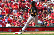 강정호(28·피츠버그 파이리츠)가 메이저리그 데뷔 첫 홈런을 9회 극적인 동점포로 장식했다. 강정호는 4일 미국 미주리주 세인트루이스의 부시스타디움에서 계속된 세인트루이스 카디널스와 메이저리그 방문경기에 7번 타자 3루수로 선발 출장해 0-1로 뒤지던 9회초 선두타자로 나서 짜릿한 동점 솔로 홈런을 쳐냈다. 강정호는 세인트루이스의 마무리 투수 트래버 로젠탈의 초구 커브(약 132㎞)를 그대로 걷어올려 좌중간 담장을 넘기는 아치를 그렸다. 강정호는 메이저리그 데뷔 첫 홈런을 결정적인 순간에 만들어내고 경기를 원점으로 돌렸다. 메이저리그 15경기 34타석 만에 기록한 홈런이다. 로젠탈은 이전 경기까지 11경기에 등판해 8세이브를 올리며 평균자책점 0.77을 찍었으나 올 시즌 첫 피홈런을 강정호에게 빼앗기고 첫 블론세이브를 기록했다. 지난달 30일 시카고 컵스와 리글리필드에서 치른 방문경기 이후 나흘 만에 선발 출장의 기회를 잡은 강정호는 동점 솔로 홈런을 포함해 5타수 2안타 1타점 1득점을 기록하며 강렬한 인상을 남겼다. 시즌 32타수 9안타를 기록한 강정호의 타율은 0.259에서 0.281로 올랐다. 시즌 7타점째를 기록한 강정호는 더불어 선발