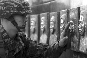 천안함 폭침 5주기를 나흘 앞둔 22일 서해 최북단 백령도는 그날의 충격을 잊은 듯 평온한 모습이다. 그러나 백령도 주민들은 여전히 북한의 도발에 불안감을 감추지 못하고 있다. 해병 6여단 장병은 평시에도 전시상황과 다름없는 경계태세를 유지하고 있다. 사진은 지난 16일 천안함 46용사 위령탑에서 한 해병이 동판에 새겨진 46용사 얼굴을 매만지는 모습. /연합뉴스