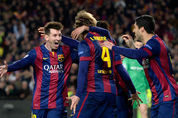 바르셀로나(스페인)가 리오넬 메시의 ‘원맨쇼’에 힘입어 맨체스터시티(잉글랜드)를 누르고 2014~2015 유럽축구연맹(UEF) 챔피언스리그 8강 진출에 성공했다. 바르셀로나는 19일 스페인 바르셀로나의 캄프누에서 열린 대회 16강전에서 메시의 킬패스에 이은 이반 라키티치의 결승골을 앞세워 잉글랜드의 맨시티를 1-0으로 꺾었다. 적진에서 열린 1차전에서 맨시티를 2-1로 누른 바르셀로나는 1, 2차전 합계 3-1로 넉넉히 다음 단계로 나아갔다. 양팀의 경기력에는 1점 이상의 격차가 있었다. 그 격차는 메시가 만들었다. 오른쪽 측면 공격수로 나선 메시가 공을 잡으면 맨시티 선수들이 협력수비를 펼쳤으나 효과적이지 못했다. 자신에게 상대의 움직임이 쏠리자 메시는 스스로 해결하기보다는 동료에게 기회를 주는 데에 집중했고 이 선택이 승부를 갈랐다. 결승골도 같은 상황에서 터져 나왔다. 메시는 전반 32분 오른쪽 측면을 돌파해 들어가다가 수비수 3명이 자신에게 집중되자 한 타이밍을 죽인 뒤 왼발 크로스를 올렸다. 비어 있던 골지역 왼쪽으로 쇄도해 들더가던 라키티치가 오른발 로빙 슈팅으로 반대편 골망을 흔들었다. 맨시티는 후반전 시작과 함께 사미르 나