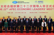 11일 오전 중국 베이징 외곽 옌치후에 자리잡은 ‘국가회의센터’에서 열린 APEC 정상 기념촬영에서 박근혜 대통령을 비롯한 각국 정상들이 기념촬영하고 있다. 앞줄 왼쪽부터 오얀타 우말라 페루 대통령, 박 대통령, 하사날 볼키아 브루나이 국왕, 조코 위도도 인도네시아 대통령, 버락 오바마 미국 대통령, 시진핑 중국 국가주석, 블라디미르 푸틴 러시아 대통령, 베니그노 아키노 필리핀 대통령, 미첼 바첼레트 칠레 대통령, 엔리께 페냐 니에토 멕시코 대통령, 쯔엉 떤 상 베트남 주석. 뒷줄 왼쪽부터 샤오 완 창 대만 전 부총통, 프라윳 찬-오차 태국 총리, 피터 오닐 파푸아뉴기니 총리, 아베 신조 일본 총리, 토니 애벗 호주총리, 나집 라자크 말레이시아 총리, 존 필립 키 뉴질랜드 /연합뉴스