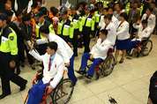 장애인아시안게임에 최초로 참가하는 북한 선수단이 인천 땅을 밟았다. 2014 인천 장애인아시안게임에 참가할 북한의 장애인선수 9명을 포함한 29명의 선수단은 지난 11일 고려항공편으로 평양을 출발, 베이징을 거쳐 아시아나항공 OZ334편으로 이날 오후 6시12분 인천국제공항에 착륙했다. 많은 인원의 짐을 찾는데 시간이 걸려 착륙 후 1시간여 만인 오후 7시17분 입국장에 모습을 나타낸 북한 선수단은 짙은 파란색 바지에 흰색 재킷을 입고 만면에 미소를 띤 채 손을 흔들었다. 정현 선수단장으로 보이는 이가 앞장서서 나오면서 방한 소감을 묻는 말에 미소로 답을 대신했다. 뒤를 이어 남자 수영 정국성, 여자 탁구 송금정, 남자 양궁 리성철 등 휠체어를 탄 세 명의 선수가 임원 등의 도움을 받아 나왔고, 남자 수영의 김철웅으로 보이는 시각장애 선수가 주변의 부축을 받으며 걸어 나왔다. 이날 공항에는 대북 장애인 지원단체인 사단법인 푸른나무와 기독인봉사협의회에서 나온 북한 응원단 60여명이 한반도기와 ‘북측 선수단의 방한을 환영합니다’라는 문구가 적힌 현수막을 들고 나와 선수단을 환영했다. 공항 측이 마련한 동선을 따라 이동한 북한 선수단은 휠체어