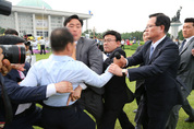 프로축구 K리그 ‘별들의 잔치’ 올스타전에 나설 스타들이 앞다퉈 승리를 다짐했다. 17일 서울 종로구 신문로 축구회관에서 열린 2014 K리그 올스타전 기자회견에서 울산 현대의 수문장 김승규는 “프로 9년차에 올스타전에 처음 출전하게 됐는데, 투표까지 1위를 했다”면서 자부심을 한껏 드러낸 뒤 “팬들이 제가 잘 막는 걸 기대하고 뽑아주셨기 때문에 올스타전 최초로 무실점 경기를 해보겠다”고 각오를 다졌다. ‘팀 K리그’ 최고 스타인 김승규가 포문을 열자 ‘팀 박지성’을 대표하는 박지성이 “이번에는 MVP를 한 번 노려보겠다”고 맞받아쳤다. 박지성과 함께 ‘팀 박지성’에 이름을 올린 이영표 KBS 해설위원은 “올스타전에서 박지성의 은퇴식도 열리는 것으로 알고 있는데, 한 골은 넣어야 하지 않겠느냐”며 박지성의 MVP 도전에 힘을 실었다. 그러나 김승규는 담담한 표정으로 “지성 형이 한동안 경기를 쉬신 만큼 골을 넣기 어려우시지 않을까 생각한다”면서 “제 목표는 끝까지 무실점”이라며 흔들림 없는 의지를 드러내 웃음을 자아냈다. 이영표 위원은 팀 승리와 박지성의 득점 외에 “자책골을 넣지 않겠다”는 각오를 밝혀 눈길을 끌었다. 이 위원은 안양LG에서 뛰던 2000년
