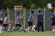 “같이 움직여!”, “공격수가 어디까지 왔는지 확인해야지!” 한국 축구 대표팀의 해외 전지훈련 첫날인 1일 미국 플로리다주 마이애미의 세인트 토머스 대학교 축구장에선 선수들의 움직임을 독려하는 홍명보 감독의 목소리가 쩌렁쩌렁하게 울려 퍼졌다. 훈련시간 기온은 섭씨 29도로 다소 덥게 느껴지는 가운데 습도가 66% 정도까지 올라가면서 훈련에 나선 선수들의 유니폼은 금세 땀으로 젖어들었다. 마이애미가 러시아와 브라질 월드컵 조별리그 1차전이 열리는 브라질 쿠이아바와 비슷한 고온다습한 기후 조건인 만큼 첫 훈련에 나선 선수들의 표정에서는 하루빨리 낯선 기후환경에 적응해 주전 자리를 차지하겠다는 독기가 느껴졌다. 홍 감독은 이날 훈련의 초점을 공수 간격조절과 상대의 패스 루트 차단에 뒀다. 훈련에 앞서 코칭스태프는 그라운드 터치라인 좌우에 각각 서로 다른 색깔의 깃발을 3개씩 꽂아놓고, 그라운드에는 11개의 콘을 세웠다. 3개의 깃발은 ‘가상의 적’의 위치를 상징하고, 그라운드에 놓인 콘은 태극전사 11명의 위치를 지정하는 역할을 했다. 홍정호(아우크스부르크)가 발등 부상으로 훈련에서 빠진 가운데 홍