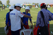 작년 런던올림픽 개인전 챔피언 기보배(광주광역시청)가 올해 세계선수권대회를 신나게 출발했다. 기보배는 지난달 30일(현지시간) 터키 안탈리아의 파필론 경기장에서 열린 2013년 세계양궁선수권대회 대진라운드에서 4개 거리 144발 합계 1천376점을 쏘아 1위를 차지했다. 대만의 에이스 탄야팅이 1천371점으로 2위를 기록했다. 한국의 장혜진(LH)과 윤옥희(예천군청)는 각각 1천369점, 1천361점으로 3위, 5위로 뒤를 이었다. 런던올림픽 개인전 은메달리스트인 아이다 로만(멕시코)은 1천368점을 쏘아 4위에 올랐다. 한국 궁사들은 모두 대진 라운드 상위권에 올라 1, 2회전을 부전승으로 통과하고 36강에 직행했다. 박성현이 2004년에 수립한 144발 세계기록 1천405점은 이번 대회에서도 경신되지 않았다. 기보배는 70m, 60m, 50m까지 탄야팅에게 뒤지다가 30m에서 고득점해 정상에 올라섰다. 한국은 기보배, 장혜진, 윤옥희의 점수를 합산한 단체전 대진 라운드에서도 4천106점을 기록, 대만(4천64점), 독일(4천30점)을 여유있게 제치고 1위에 올랐다. 석지현(현대모비스)은 여자 컴파운드 대진 라운드에서 690점을 쏘아 알비나 로기노바(692