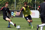 ‘지동원-이근호’ vs ‘조동건-구자철’ 유럽파 합류로 최강의 전력을 구축한 홍명보호(號)가 최전방 공격진의 구성을 놓고 본격적인 시험에 나섰다. 홍명보 감독은 3일 파주NFC(대표팀트레이닝센터)에서 열린 이틀째 소집훈련에서 골키퍼 3명을 뺀 20명의 선수를 두 팀으로 나눠 훈련을 시키면서 조직력 끌어올리기에 집중했다. 선수들은 우선 자신의 위치가 표시된 그라운드에 선 뒤 홍 감독이 지시하는 상대의 공격 방향에 따라 각자 지정된 위치를 이동하는 훈련을 치렀다. 골키퍼를 제외한 10명의 선수가 간격을 일정하게 유지하면서 일사불란하게 수비 위치를 잡는 게 목적이었다. 이를 위해 홍 감독은 훈련에 앞서 그라운드 중앙에 작전판을 가져다 놓고 선수들에게 일일이 어떻게 움직여야 하는 지 설명하는 수고를 아끼지 않았다. 홍 감독은 측면에서 공격을 당하는 상황에서는 두 명의 선수가 압박을 들어가고, 나머지 선수들이 수비에 들어간 선수의 빈자리를 커버하는 유기적 움직임을 강조했다. 특히 간결한 플레이와 정확한 위치 파악이 핵심이었다. 이런 가운데 조직력 훈련에서 취재진의 시선을 끈 것은 단연 두 팀으로 나뉜 공격수들의 조합이었다.