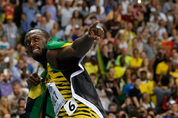 ‘단거리 황제’ 우사인 볼트(27·자메이카)가 제14회 세계육상선수권대회에서 남자 100m 왕좌를 탈환했다. 볼트는 12일(한국시간) 러시아 모스크바 루즈니키 스타디움에서 열린 대회 이틀째 남자 100m 결승에서 9초77의 기록으로 가장 먼저 결승선을 통과했다. 저스틴 게이틀린(미국)이 9초85의 기록으로 은메달을 목에 걸었고 네스타 카터(자메이카·9초95)가 뒤를 이었다. 2009년 베를린 세계선수권대회에서 9초58의 세계기록으로 첫 금메달을 목에 건 오른 볼트는 2011년 대구 대회에서 부정출발해 충격적으로 실격당했으나 이날 우승으로 4년 만에 정상을 되찾았다. 올림픽과 세계선수권대회를 통틀어 유일하게 결승에서 실패한 기록인 ‘대구의 악몽’도 깨끗하게 날려버렸다. 세계선수권대회 통산 6개째 금메달을 따낸 볼트는 역대 최다관왕인 미국의 ‘육상 전설’ 칼 루이스(8개)에 두 개 차이로 다가섰다. 남은 200m와 400m 계주에서도 우승해 2009년 베를린에 이어 두 번째 단거리 3관왕에 오른다면 루이스와 어깨를 나란히 하게 된다. 이날 볼트의 기록은 자신이 2009년 베
