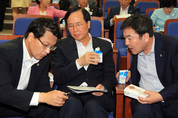 새누리당은 17일 경제민주화 관련한 정책 의원총회에서 각종 불공정행위를 규제하는 입법에 당력을 모으자는 데 공감대를 형성한 것으로 전해졌다. 홍지만 원내대변인은 의총 후 브리핑에서 “일감 몰아주기와 부당 내부거래를 막기 위한 법률을 하루 빨리 처리해야 한다는 게 중론”이라며 “지배구조와 같은 거버넌스 문제는 심도있게 더 많이 논의하자는 의견이 많았다”고 밝혔다. 재벌의 ‘일감 몰아주기’로 대표되는 불공정행위에 대한 규제 법안을 6월 국회에서 먼저 처리하고, 순환출자 금지·대주주 적격성 심사 강화 등 지배구조 관련 법안은 추가 논의하자는 것이다. 최경환 원내대표가 이날 최고위에서 “대기업 총수일가의 사익 편취를 위한 일감 몰아주기, 하도급 부당특약 문제 등을 우선 처리해야 하지 않겠는가 생각하고 있다”고 말한 것도 같은 맥락으로 해석된다. 특히 의총에서는 기존 경제민주화 강온 논쟁과는 별개로 ‘경제 검찰’로 불리는 공정거래위원회의 역할론이 도마 위에 올라 눈길을 끌었다. 공정위가 제 역할을 하지 못한 탓에 재계의 불공정거래 관행이 광범위해졌다