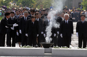 고 노무현 전 대통령의 서거 4주기를 맞은 23일 경남 김해시 진영읍 봉하마을에는 야권 인사들이 대거 집결해 노 전 대통령을 추모했다. 매주 목요일 열리던 고위정책회의도 24일로 미루고 의원들의 참여를 독려한 민주당은 김한길 대표와 전병헌 원내대표를 비롯한 40여명의 의원이 추도식에 참석했고 박원순 서울시장, 송영길 인천시장 등 지방자치단체장들도 자리를 함께 했다. 참여정부 출신으로는 이해찬·한명숙 전 총리와 문재인 의원, 이종석 전 통일부장관, 유시민 전 보건복지부 장관 등이, 노무현재단에서는 이병완 이사장과 문성근 이사 등이 참석했다. 안희정 충남지사와 이광재 전 강원지사, 서갑원 전 의원, 백원우 전 의원 등 최측근에서 노 전 대통령을 보좌한 인사들은 전날 유족과 제사를 지내기도 했다. 통합진보당 이상규 김선동 의원과 진보정의당 조준호 공동대표, 천호선 최고위원 등 진보정당 인사들도 추모 대열에 동참했다. 여권에서는 새누리당 최경환 원내대표와 홍지만 원내대변인, 청와대 이정현 정무수석이 참석했다. 이날 추도식에서는 최근 5·18 기념식에서 제창이 거부돼 논란이 됐던 ‘임을 위한 행진곡’과 노 전 대통령이 생