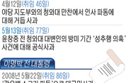 박근혜 대통령이 13일 윤창중 전 청와대 대변인의 방미 기간 ‘성추행 의혹’ 사건에 대해 공식 사과하면서 이번 정부에서도 어김없이 ‘취임 초 사과 징크스’가 재연됐다. 역대로 대통령이 취임 후 인사와 조직 정비를 끝내고 국정운영에 강력한 드라이브를 걸어야할 시점에 예상치 못한 ‘돌발악재’를 만나 대국민사과를 하는 일이 되풀이되고 있는 것이다. 박 대통령은 이날 청와대에서 주재한 수석비서관 회의 모두발언을 통해 “이번 방미 일정 말미에 공직자로서 있어서는 안 되는 불미스러운 일이 발생해 국민 여러분께 큰 실망을 끼쳐 드린 데 대해 송구스럽게 생각한다”며 공식 사과했다. 박 대통령이 취임 33일 만인 지난 3월30일 새 정부 장·차관 후보자들의 잇따른 낙마사태에 대해 대변인을 통해 대독 사과를 하고, 46일 만인 지난달 12일 야당 지도부와의 청와대 만찬에서 인사 파동에 대해 거듭 사과한 적은 있지만, 이번처럼 직접 공식 회의석상에서 본인의 육성을 통해 공개 사과한 것은 사실상 이번이 처음이다. 취임 3개월째, 정확히 77일 만의 사과다. 이를 두고 정치권에선 &l