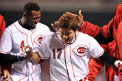 추신수(31·신시내티 레즈)가 극적인 끝내기 홈런을 터뜨리고 더스티 베이커 감독에게 1천600번째 승리를 바쳤다. 추신수는 8일 미국 오하이오주 신시내티 그레이트아메리칸볼파크에서 열린 미국프로야구 애틀랜타 브레이브스와의 홈경기에서 1번 타자 중견수로 출전해 4-4로 맞선 9회 2사 후 애틀랜타의 마무리 크레이그 킴브럴에게서 좌중간 펜스를 넘어가는 굿바이 홈런을 쏘아 올렸다. 그는 0-3으로 끌려가던 3회 2사 후 애틀랜타 우완 선발 크리스 메들런의 직구를 받아쳐 우측 펜스를 넘어가는 솔로 아치를 그리는 등 시즌 6,7호 홈런을 잇달아 터뜨리고 대폭발했다. 추신수가 한 경기에서 홈런 2방을 때리기는 올 시즌 처음이다. 또 끝내기 홈런은 클리블랜드 인디언스에서 뛰던 2011년 8월 24일 시애틀 매리너스와의 더블헤더 1차전에서 4-5로 뒤진 9회 역전 굿바이 3점 홈런을 터뜨린 이래 생애 두 번째다. 5일 시카고 컵스와의 경기에서 왼쪽 펜스를 넘어가는 1회 선두 타자 초구 홈런을 때린 이래 사흘 만에 홈런 2개를 추가한 추신수는 개인 통산 90번째 홈런을 달성하고 겹경사를 누렸다. 추신수의 시즌 타점은 15개로 불었다. 1회 좌익수 뜬공으로 물러난