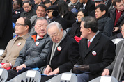 박근혜 대통령은 취임식 당일인 25일 중국과 러시아, 일본 등 주변 3강의 외교사절들과 차례로 단독 면담을 갖고 한반도 안보와 양자간 외교강화 방안 등을 논의했다. 박 당선인은 이날 오후 청와대 접견실에서 일본의 아소 다로 부총리 겸 재무상과 회동했다. 아소 부총리는 “대통령 취임을 진심으로 축하드린다”고 축하 인사를 건넨 뒤 “5년 전 참석 당시는 너무 추웠는데, 오늘은 날씨가 좋아 인상깊었다”며 언급했다. 이에 대해 박 대통령은 “야당 대표 시절 일본을 방문했을 때 외무대신으로 한일 관계에 열린 마음으로 대해 주신게 기억에 남는다”면서 “외무대신, 총리대신으로 양국 관계를 위해 노력해주신데 대해 감사하게 생각한다”며 사의를 표했다. 앞서 박 대통령은 같은 여성인 잉락 친나왓 태국 총리를 접견했다. 잉락 총리는 “같은 여성 지도자로서 잘 하기를 기대하겠다”고 축하를 건넸고, 박 대통령은 “첫 외국 손님이시다. 오래 기억에 남을 것 같다”며 화답했다. 박 대통령은 이후 세종문화회관에서 개최된 취임 경축 연회에 참석한 뒤 다시 청와대로 돌아와 중국의 차기 부총리로 유력한 류옌둥 공산당 정치국원을 접견하고 한반도 안보 위기 등을 논의했다. 박 대통령은 이어 빅토