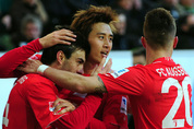 독일 프로축구 분데스리가 아우크스부르크에서 활약하는 구자철(24)이 ‘친정팀’인 볼프스부르크를 상대로 시즌 첫 도움을 기록했다. 구자철은 3일 독일 볼프스부르크의 폴크스바겐 아레나에서 열린 볼프스부르크와의 2012~2013 정규리그 20라운드 원정경기에 오른쪽 측면 공격수로 선발출전해 팀이 0-1로 지고 있던 전반 25분 얀 모라베크의 동점골에 도움을 줬다. 아우크스부르크는 구자철의 활약을 발판 삼아 볼프스부르크와 1-1로 비겼고, 구자철은 이번 시즌 첫 도움의 기쁨을 맛보며 공격포인트를 3골 1도움으로 늘렸다. 지난달 아우크스부르크 유니폼을 입은 지동원(22)도 왼쪽 날개로 3경기 연속 선발로 나서 구자철과 함께 호흡을 맞췄지만 좀처럼 기회를 잡지 못하고 후반 42분 교체돼 시즌 첫 골 사냥에 실패했다. 2승8무10패(승점 14)가 된 아우크스부르크는 이날 승리를 따낸 호펜하임(승점 16)에 밀려 16위에서 17위로 한 계단 추락, 강등권 탈출에 실패했다. 지동원과 구자철의 ‘지구특공대’가 좌우 날개로 3경기 연속 출격한 아우크스부르크는 전반 12분 지동원의 중거리포를 시작으로 공세를 펼쳤지만 먼저 실점하며 힘겹게