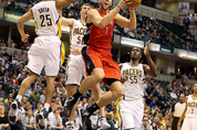 남자 프로배구 인천 대한항공이 ‘주포’ 김학민(29)의 공격 리듬이 깨져 고민에 빠졌다. 대한항공은 13일 대전 충무체육관에서 열린 삼성화재와의 시즌 첫 맞대결에서 풀세트 접전 끝에 2-3으로 져 3연승 행진이 좌절됐다. 경기를 마치고 대한항공 신영철 감독은 김학민의 부진 때문에 고민이 크다고 털어놓았다. 이날 김학민은 5세트 내내 뛰면서 서브에이스 1개와 블로킹 2개를 포함해 12점을 올렸다. 공격 성공률도 60%에 달해 지표만 보면 준수한 성적이다. 하지만 실제로 뛰는 모습을 보면 확실히 아쉬운 모습이 많았다. 2006~2007시즌 신인왕, 2010~2011시즌 정규리그 최우수선수(MVP)에 빛나는 김학민은 국내 토종 공격수 중 누구보다 화려한 스파이크를 자랑하는 선수다. 키는 193㎝로 다른 스타 공격수들보다 오히려 작은 편에 속한다. 그러나 ‘뛰어오르면 라면을 끓여 먹고 내려온다’는 우스갯소리가 나올 만큼 높은 점프와 긴 체공 시간을 바탕으로 호쾌한 스파이크를 내리꽂아 청량감을 선사한다. 대한항공의 첫 정규리그 우승을 이끈 2010-2011시즌에는 이런 장점이 최고조에 올랐지만 올 시즌은 달라 보인다. 8득점
