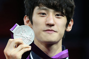 한국 태권도의 희망 이대훈(20·용인대)이 런던올림픽 남자 58㎏급에서 은메달을 목에 걸었다. 이대훈(사진)은 8일 오후(현지시간) 영국 런던의 엑셀런던 사우스아레나에서 열린 2012 런던올림픽 태권도 남자 58㎏급 결승에서 세계선수권대회 2회 연속 우승자인 호엘 곤살레스 보니야(스페인)에게 8-17로 져 은메달을 차지했다. 2010년 중국 광저우 아시안게임과 지난해 경주 세계선수권대회에서는 63㎏급, 올해 5월 베트남 호찌민 아시아선수권대회에서는 53㎏급에서 우승한 이대훈은 이번 올림픽에서 금메달을 따 태권도 메이저대회를 석권하는 ‘그랜드슬램’을 달성하려 했지만 수포가 됐다. 이대훈은 펜-엑 까라껫(태국)과의 첫 경기(8-7 승), 타미르 바유미(이집트)와의 8강전(11-10 승)에서는 잇따라 서든데스로 진행되는 연장전까지 치렀다. 4강에서는 알렉세이 데니센코(러시아)를 7-6으로 꺾고 힘겹게 결승에 진출해 세계랭킹 1위 보니야 앞에 섰다. 원래 체급은 63㎏급이지만 올림픽 출전을 위해 58㎏급으로 낮춘 이대훈은 초반 두 경기 연속 연장 승부까지 벌이며 많이 지친 듯했다. 1라운드 시작하자마자 몸통 공격을 허용한 뒤 보니야