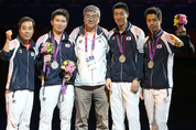 한국 남자 탁구가 2012 런던올림픽 단체전에서 중국에 막혀 은메달을 땄다. 주세혁(세계랭킹 10위·삼성생명), 오상은(11위·KDB대우증권), 유승민(17위·삼성생명)이 팀을 이룬 한국은 8일(현지시간) 영국 런던의 엑셀 런던 노스아레나에서 열린 대회 12일째 탁구 남자 단체전 결승전에서 중국에 0-3으로 졌다. 초반부터 강한 공세로 세계 최강 중국에 도전했지만 장지커(1위), 마룽(2위), 왕하오(4위)로 구축한 ‘만리장성’의 두터운 벽을 넘지 못했다. 하지만 2008 베이징올림픽 때 동메달에서 은메달로 메달 색을 한단계 끌어올리는 값진 성과를 이뤘다. 앞서 남자 개인전과 여자부 개인·단체전에서 노메달에 그쳤던 한국은 남자 단체전 은메달로 이번 대회를 마무리했다. 중국은 단체전 우승으로 4년 전 베이징 대회에 이어 2회 연속으로 탁구에 걸린 네 개의 금메달을 싹쓸이하며 다시금 탁구 최강국의 위용을 과시했다. 한국은 이날 1단식 주자로 이번 대회에서 키플레이어 역할을 했던 유승민을, 2단식에는 에이스 주세혁을 내보내 초반 승부수를 띄웠다. 이에 맞선 중국은 단체전에만 출전하는 전 세계랭