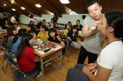 2012 런던 올림픽에 나서는 태극전사들은 예전과 비교해 한 가지 걱정을 덜었다. 대한체육회가 브루넬 대학에 차린 선수단 훈련 캠프에 태릉선수촌의 영양사와 조리사들을 데려와 훌륭한 한식을 먹인 덕에 현지 음식이 입에 맞지 않아 고생할 필요가 없어진 것이다. 24일(현지시간) 브루넬 대학 훈련 캠프 미디어데이에서 공개된 선수들의 식단을 살펴보면 이런 노력이 헛되지 않았음을 알 수 있다. 이날 선수들에게 제공된 저녁 식사는 6개의 반찬과 1개의 국으로 이루어졌다. 숙주나물 무침과 데친 브로콜리, 잡채가 입맛을 돋웠다. 소고기와 닭고기 요리가 하나씩 나왔다. 선수들에게 꼭 필요한 단백질을 공급할 음식이었다. 싸 먹을 수 있도록 상추가 곁들여져 상큼함을 더했다. 여기에 잘 익은 총각김치는 느끼한 현지 음식에 지친 혀를 달래기에 충분했다. 이날 제공된 국은 도가니탕이었다. 태릉선수촌에서 파견된 조리사들은 한 그릇 가득 도가니를 퍼 주며 선수들의 기운을 북돋우려 노력했다. 선수들은 또 입맛에 따라 흰밥과 흑미밥을 골라 먹을 수 있었다. 각종 부식이 풍부하게 나오는 태릉선수촌에는 미치지 못했지만 그래도 두 종류의 과일과 우유, 요구르트, 주스, 차 등을 먹을 수 있게 준